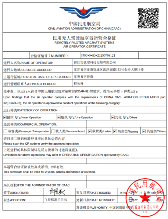 ¿ËÈÕ£¬µÍ¿Õ¿Æ¼¼¹«Ë¾ÒÀ¸½¹úÆóµÄÔðÈμ̳С¢¡¢¸ßЧµÄÍŶÓÖ´ÐÐÁ¦ºÍ¶ÔµÍ¿Õ¾¼Ã¿ªÕ¹Ç÷ÊÆµÄÃôÈñ¶´²ì£¬ÀÖ³ÉÕ¶»ñ“ÃñÓÃÎÞÈ˼ÝÊ»º½¿ÕÆ÷ÔËÓª¼°¸ñÖ¤”¼°µÍ¿ÕÁìÓò½¹µã×ÊÖÊ13ÏΪ¹«Ë¾ÔÚÍòÒÚ¼¶ÐÂÀ¶º£ÖÐÑï·«Æðº½µÓÚ¨¼áʵ»ù´¡£¬Ò²ÎªËÞǨµÍ¿Õ¾¼Ã¹¤Òµ¸ßÖÊÁ¿¿ªÕ¹×¢ÈëÇ¿¾¢¶¯ÄÜ¡£