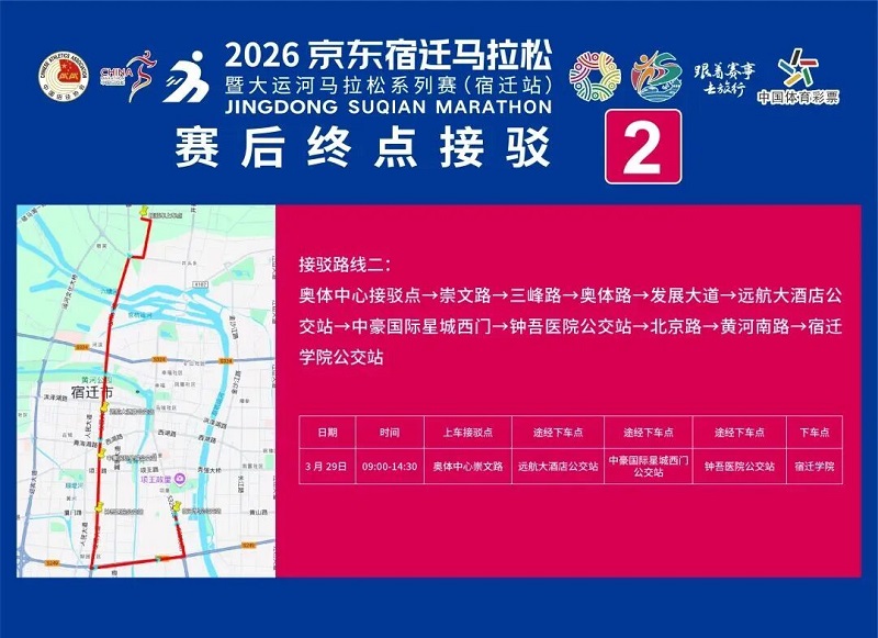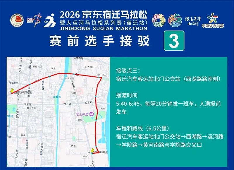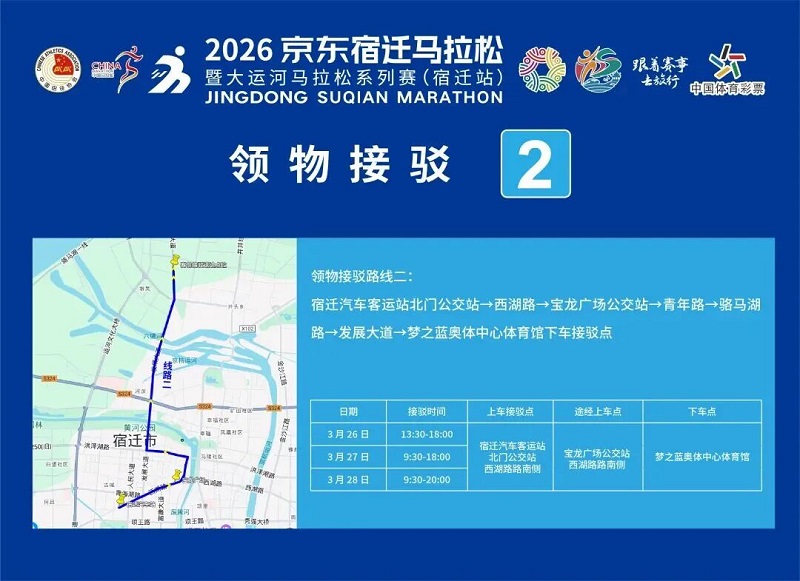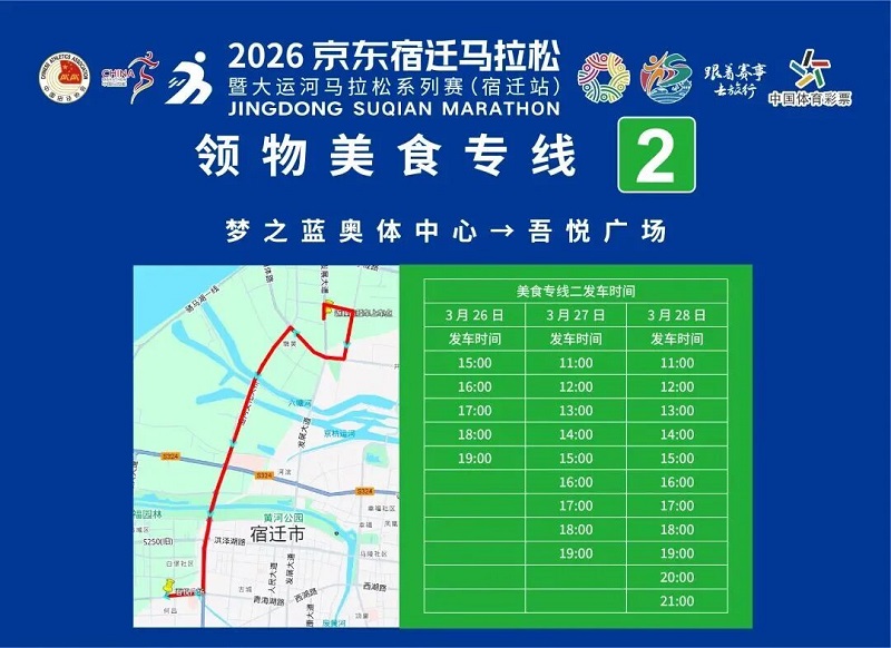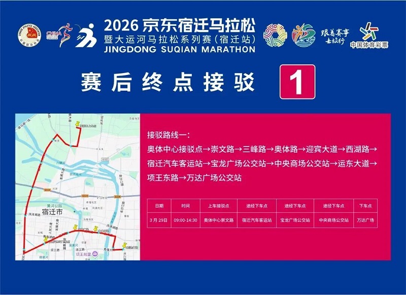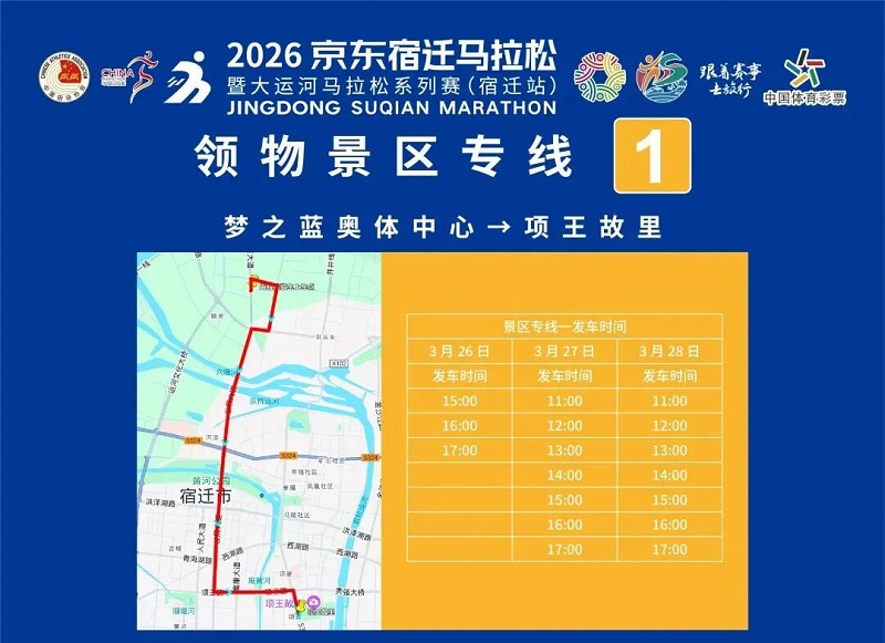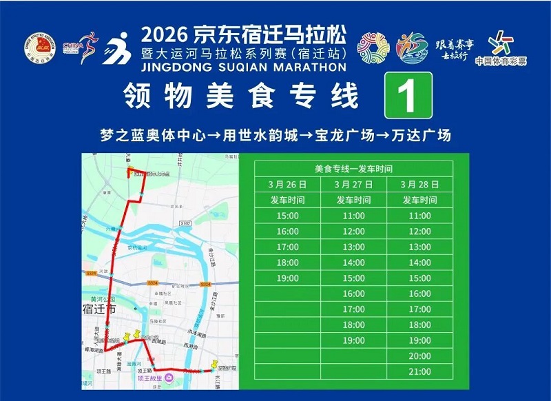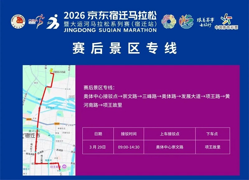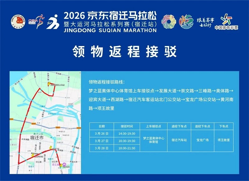 3月26日-30日,,参赛选手可凭号码布或中签短信,,免费乘坐宿迁市区内(宿城区、、宿豫区、、洋河新区、、湖滨新区)公交车。