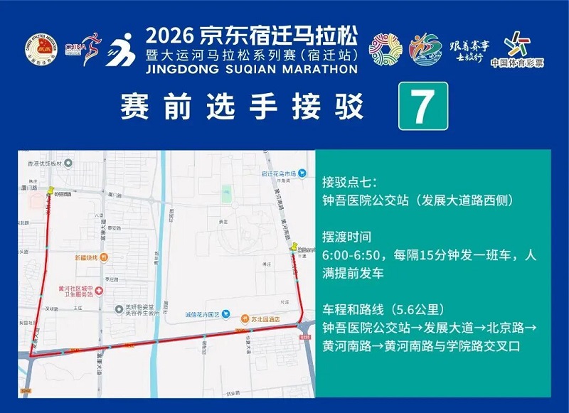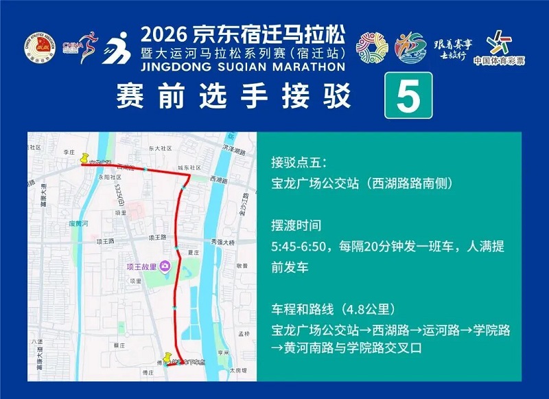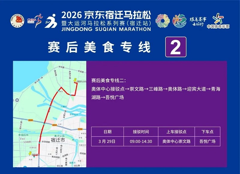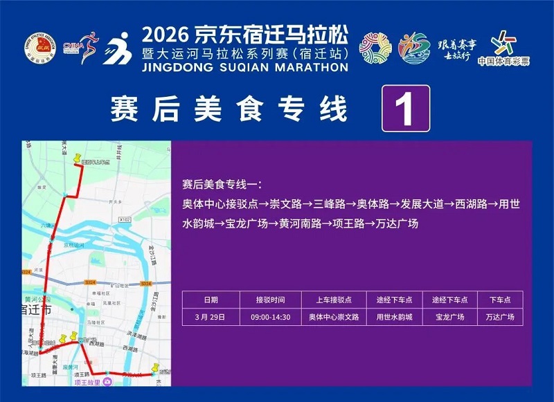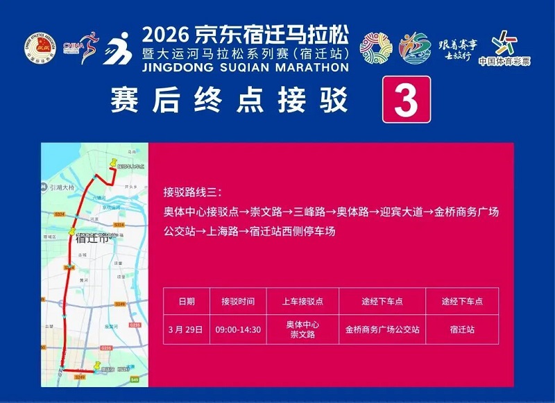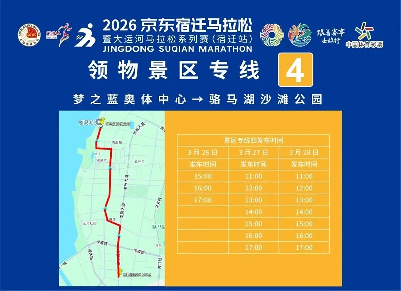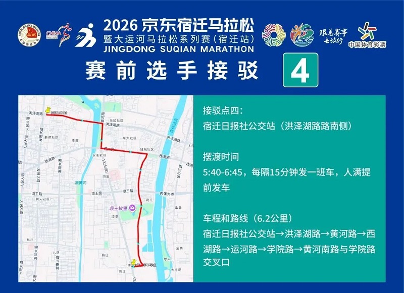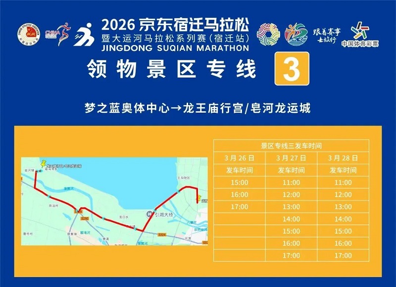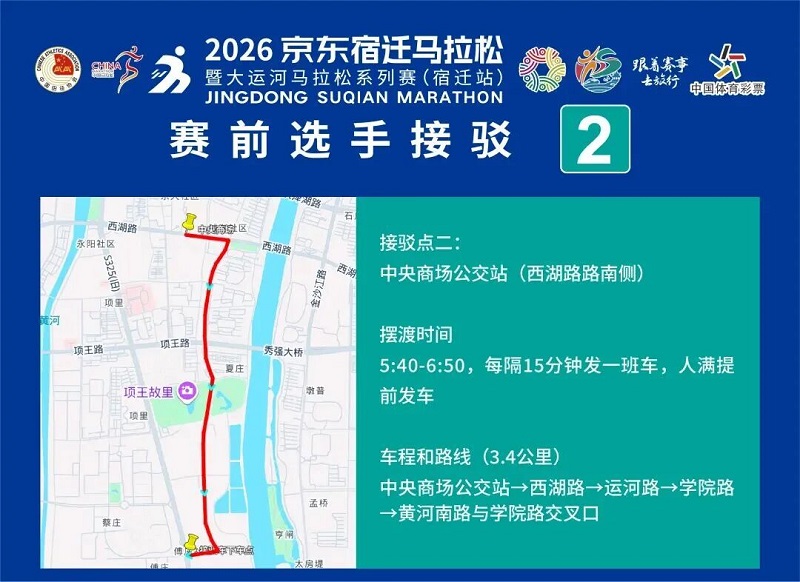 3月26日-30日,,参赛选手可凭号码布或中签短信,,免费乘坐宿迁市区内(宿城区、、宿豫区、、洋河新区、、湖滨新区)公交车。
