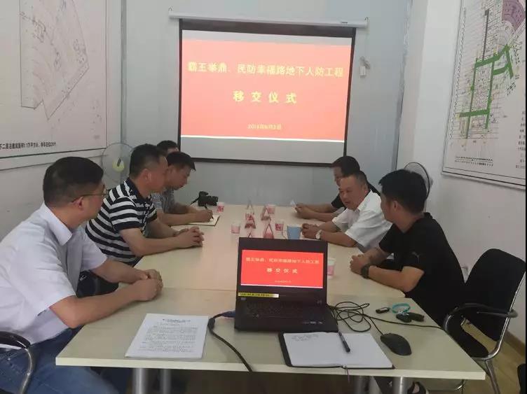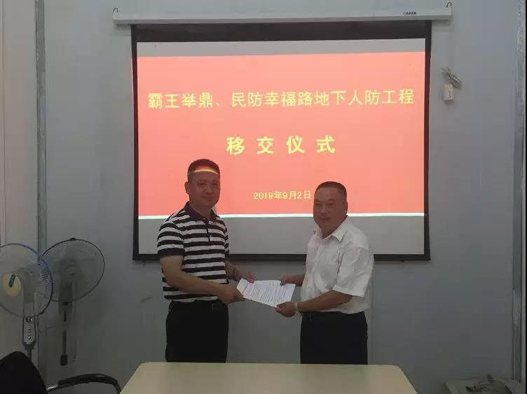 9月2日下昼,,市住建局、、、市百乐博集团在霸王举鼎地下人防工程聚会室举行了霸王举鼎和幸福路地下人防工程移交仪式。
