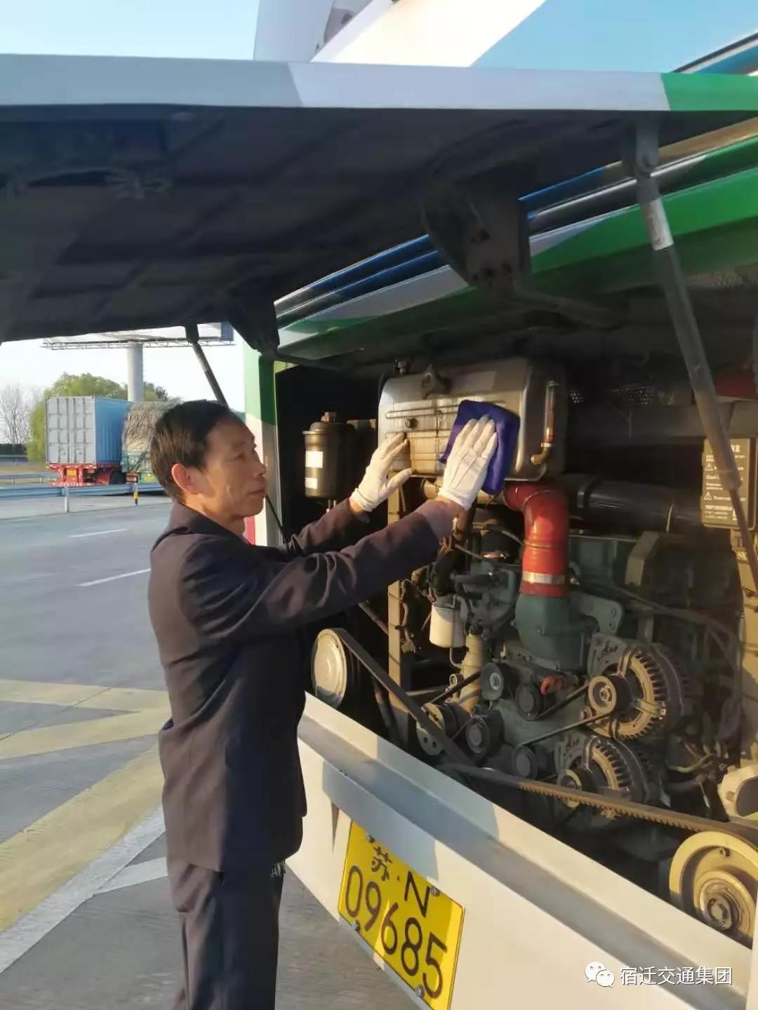 车辆抵达南通的站点后,,殷建华使用短暂的休息时间,,扫除车辆卫生、、、检查车辆性能。。