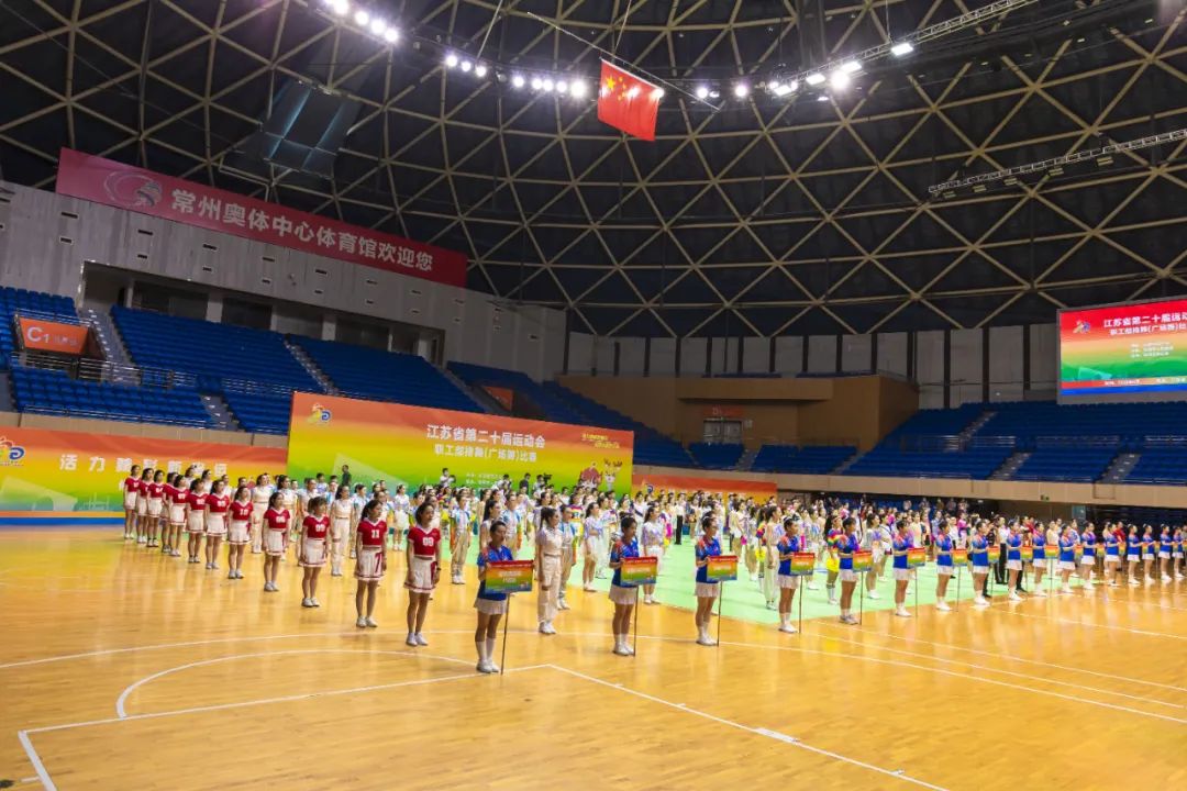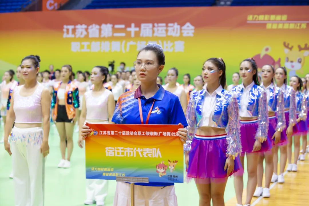8月1日至5日,,,江苏省第二十届运动会职工部排舞(广场舞)角逐在常州奥体中心体育馆举行,,,宿迁百乐博集团组队代表宿迁市加入角逐,,,自选曲目《骁》获得总分第一的优异效果。