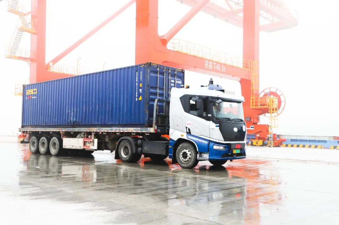 11月10日,,,一辆无人智能水平运输车在宿迁港中心港区“闪亮登场”。。标记着宿迁港无人驾驶和人工内集卡混行作业的“智慧口岸”即将上线。。